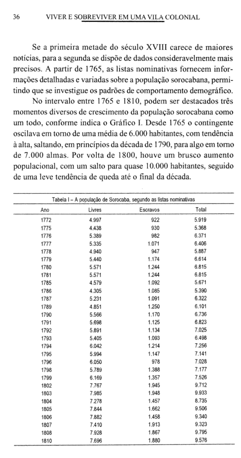 Viver e sobreviver em uma vila colonial: Sorocaba, séculos XVIII e XIX Data: 01/01/2001 Créditos/Fonte: Carlos de Almeida Prado Bacellar Página 36