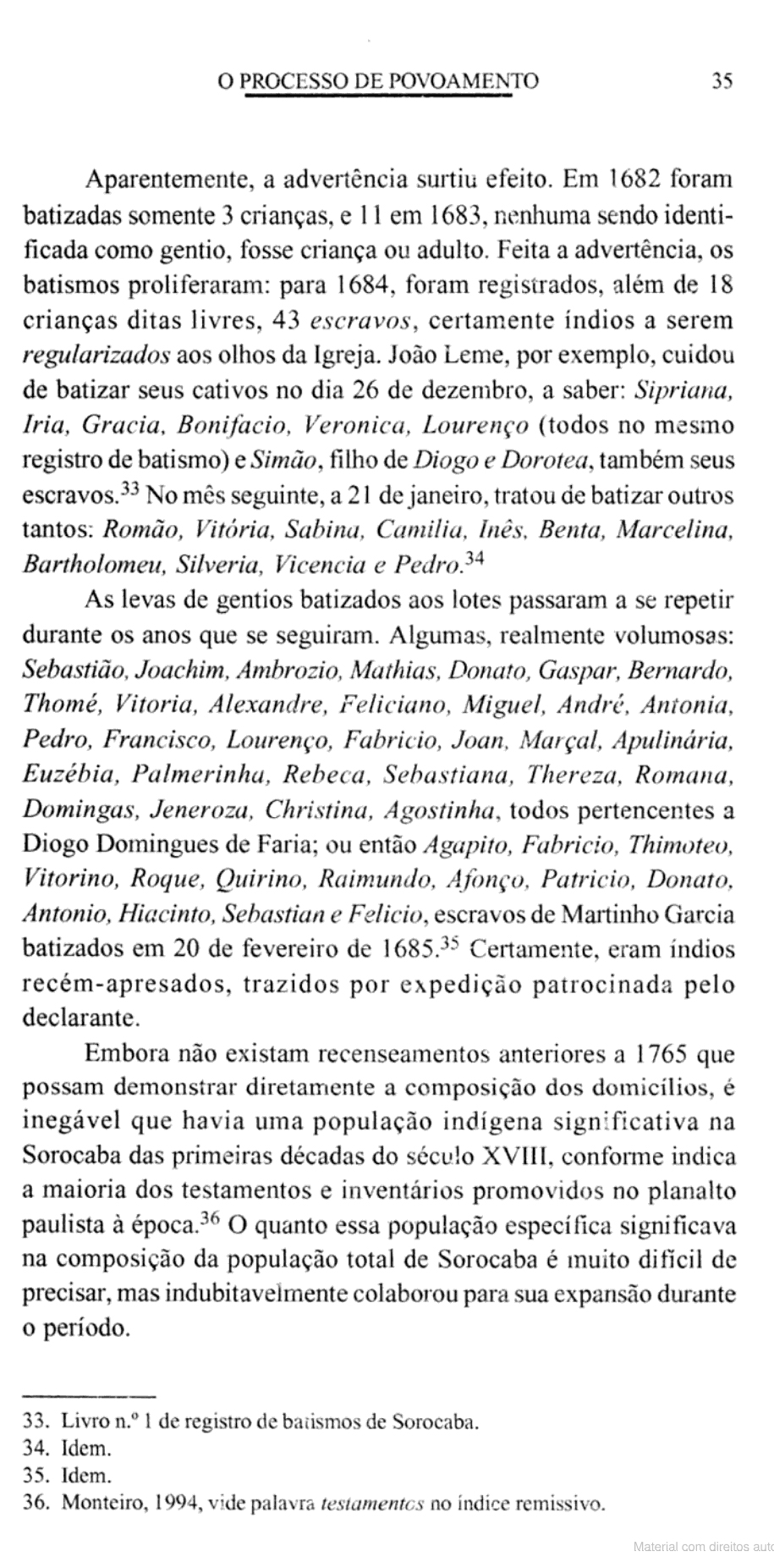 Viver e sobreviver em uma vila colonial: Sorocaba, séculos XVIII e XIX Data: 01/01/2001 Créditos/Fonte: Carlos de Almeida Prado Bacellar Página 35
