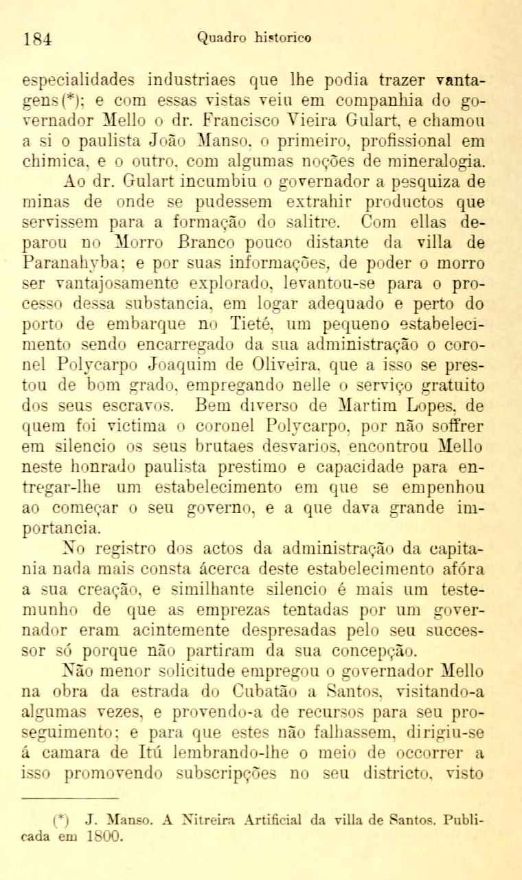 Quadro histórico da província de S. Paulo até o anno de 1822 Data: 01/01/1897 Créditos/Fonte: José Joaquim Machado d´Oliveira 1790-1867 Página 188