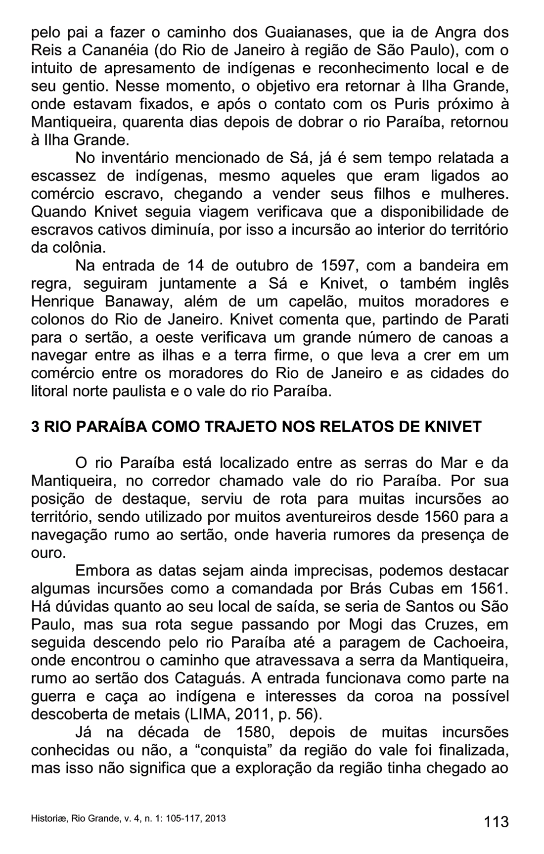 A viagem do corsário inglês Anthony Knivet ao mar do sul e sua passagem pelo vale do rio Paraíba Data: 01/01/2013 01/01/2013