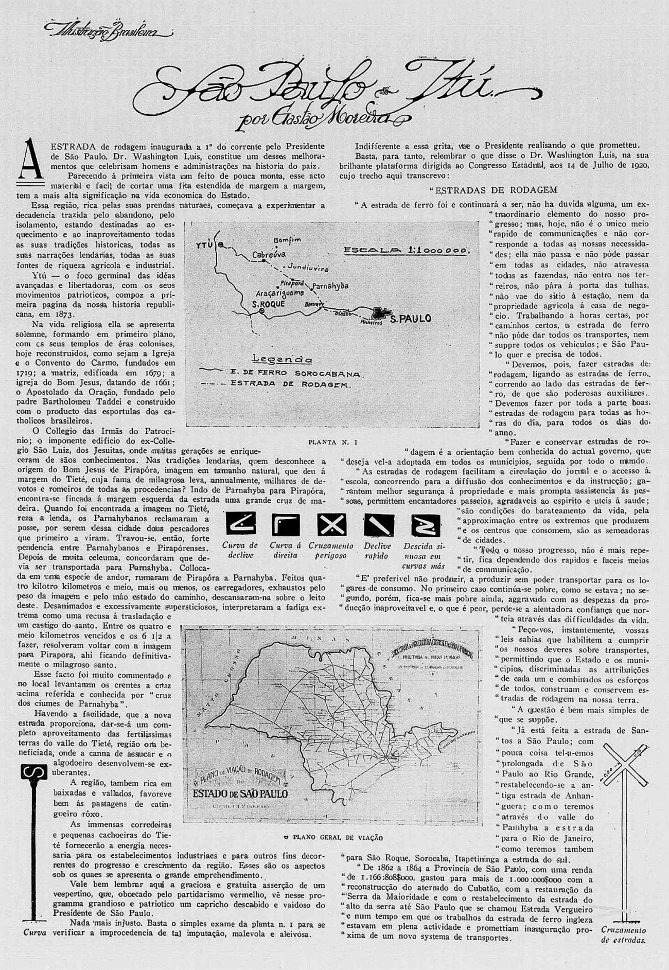 (...) Já está feita a estrada de Santos a São Paulo; com pouca coisa tel-a-emos prolongada de São Paulo ao Rio Grande, restabelecendo-se a antiga estrada de Anhanguera; como teremos através do vale do Parahyba a estrada para o Rio de Janeiro como teremos também para São Roque, Sorocaba, Itapetininga a estrada do sul.